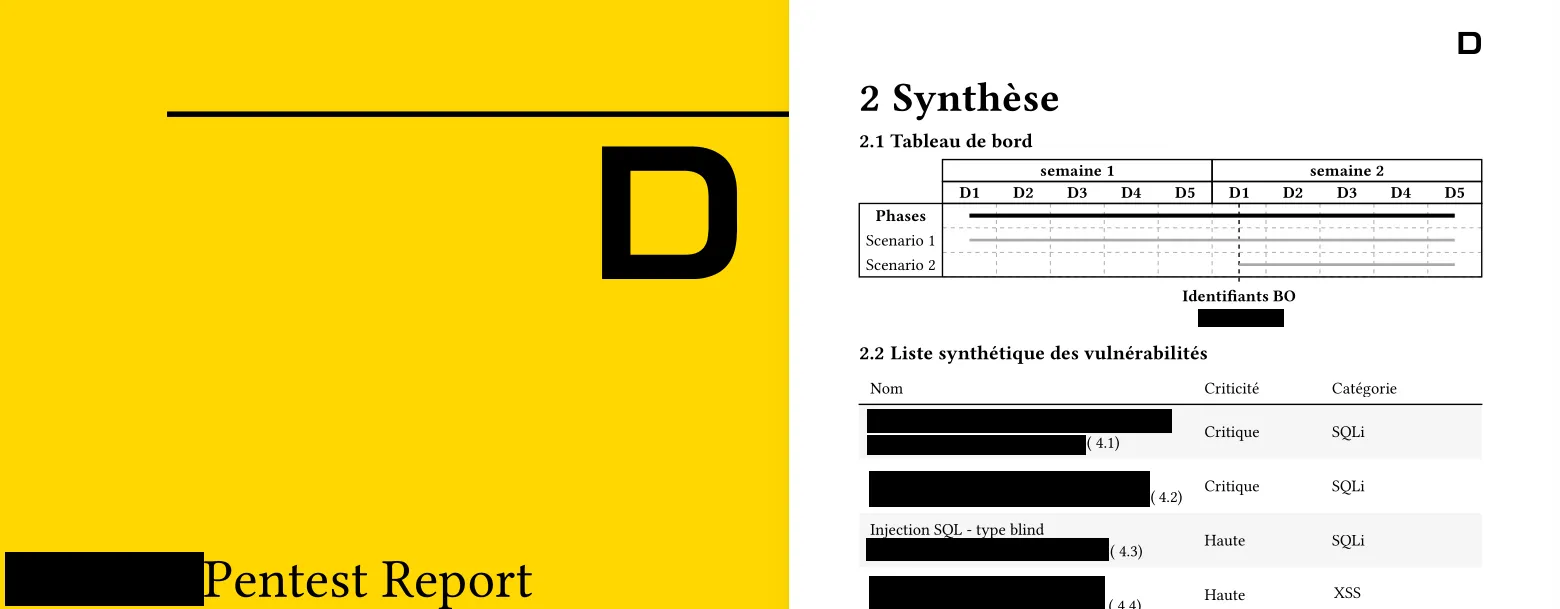 A partir d'un périmètre et d'objectifs définis avec vous, nous mettrons à l'épreuve votre cybersécurité en situation réelle. Vous obtenez un livrable avec les vulnérabilités détectées et des recommandations actionnables que vous pouvez mettre en oeuvre en autonomie ou à travers un accompagnement spécifique et personalisé.